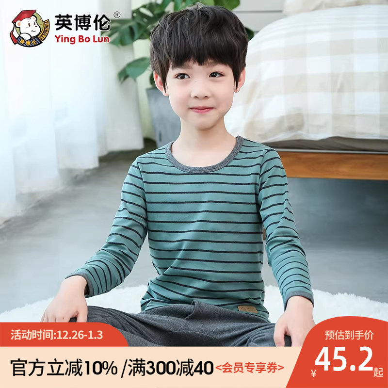 英博伦纯棉男童内衣套装全棉薄款儿童秋衣秋裤小童中大童春秋睡衣
