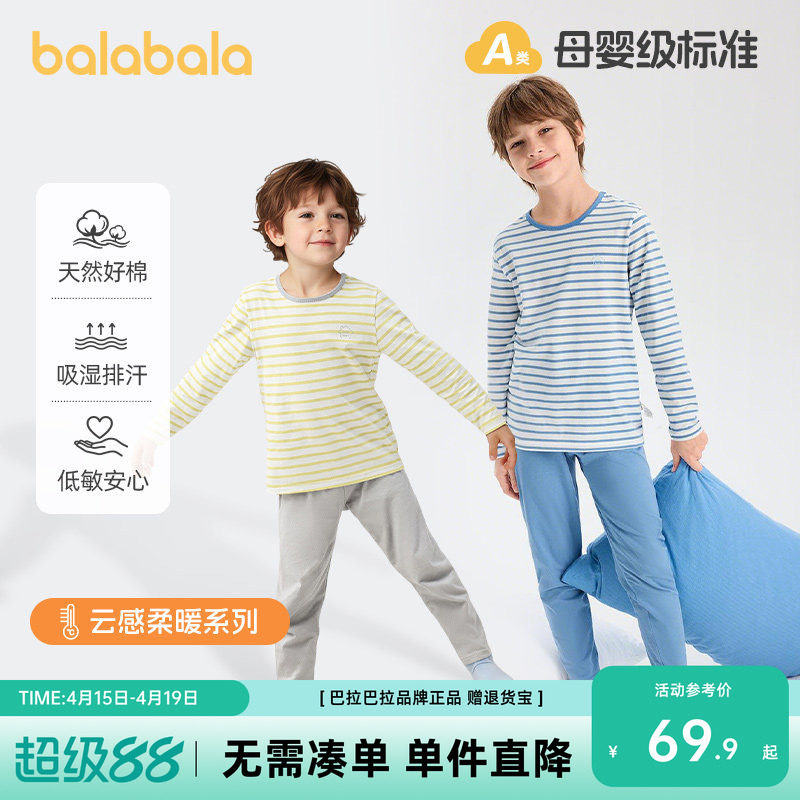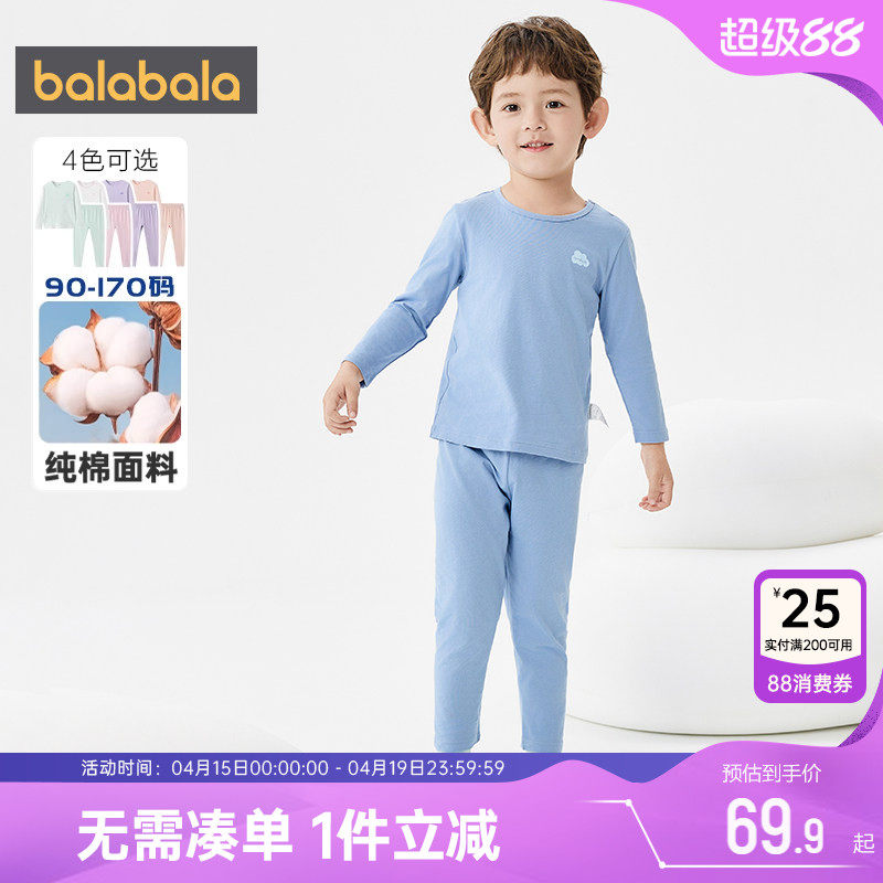 巴拉巴拉儿童内衣套装纯棉男童秋衣秋裤中大童小童宝宝保暖衣内搭