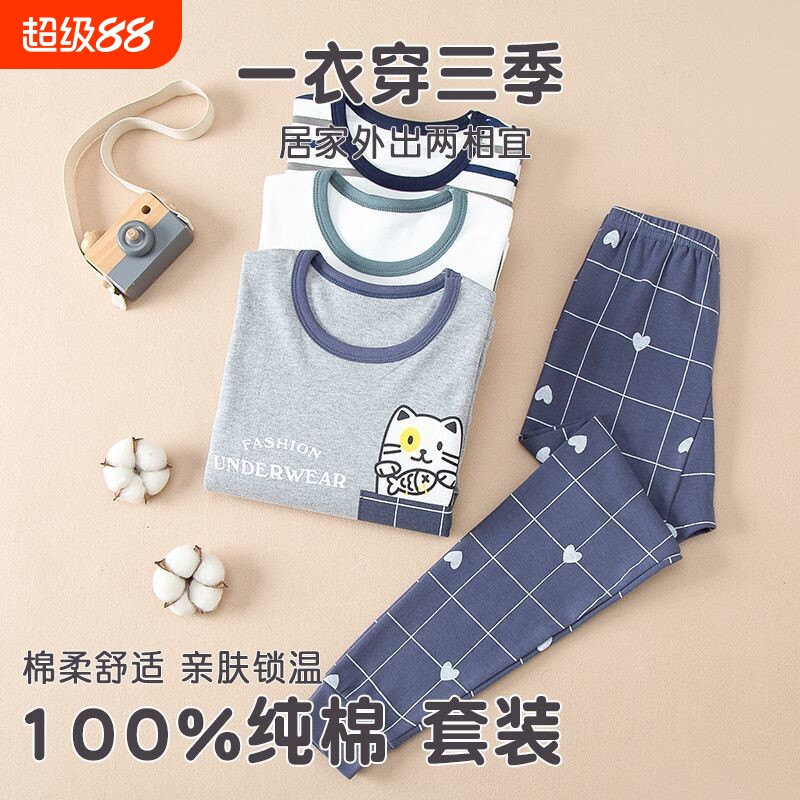 无骨儿童纯棉内衣套装男女童秋衣秋裤中小童全棉春秋睡衣冬打底裤