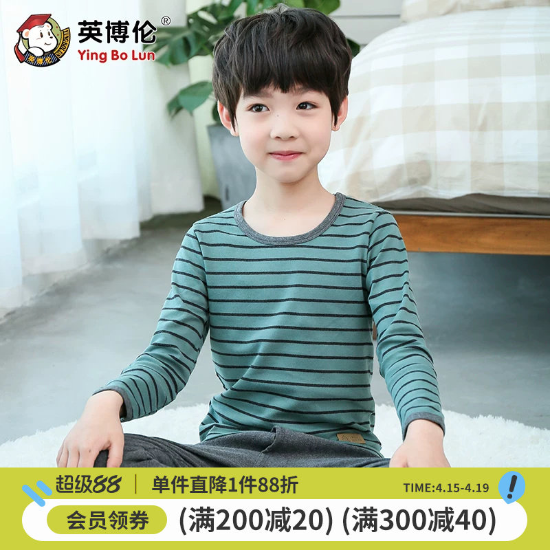 英博伦纯棉男童内衣套装全棉薄款儿童秋衣秋裤小童中大童春秋睡衣