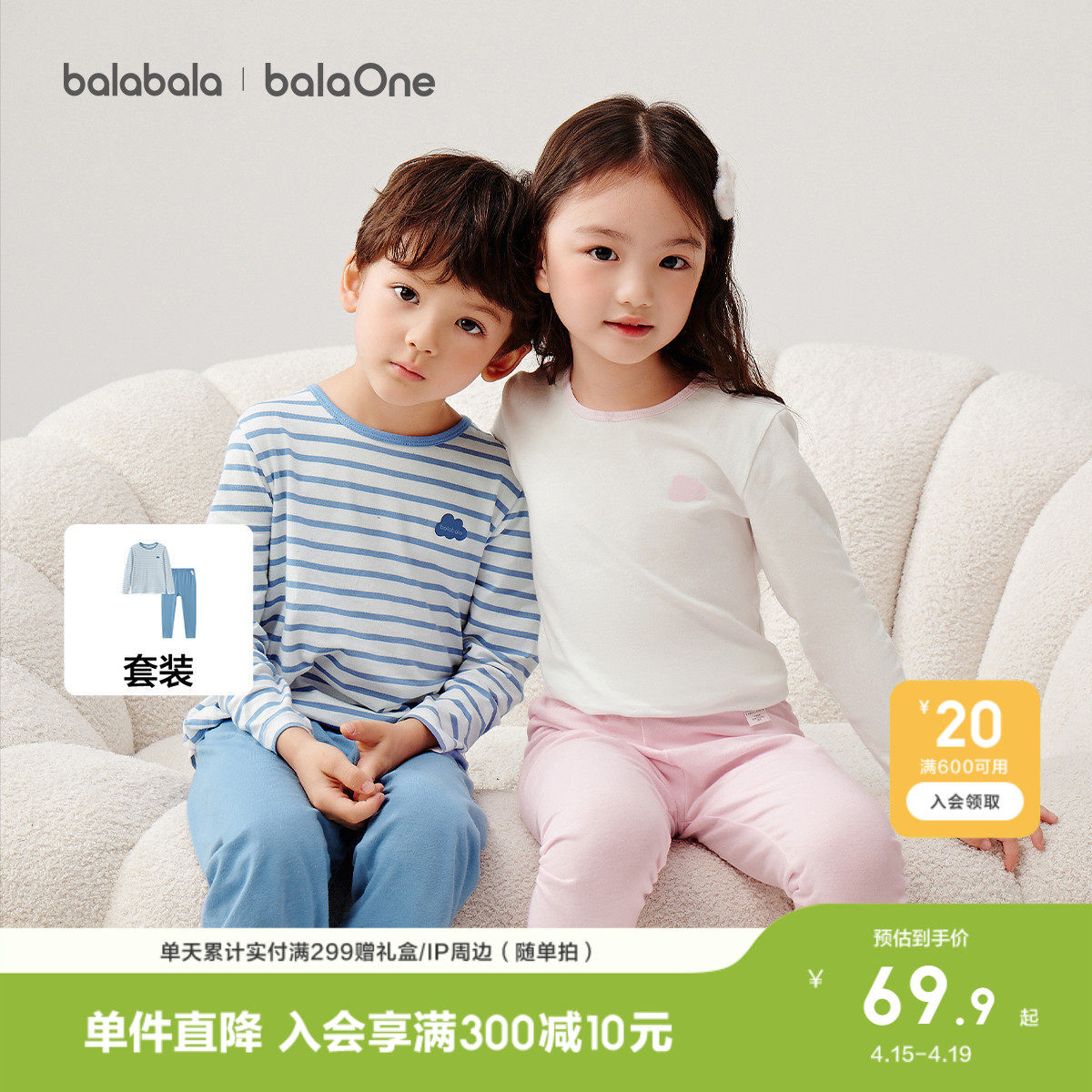巴拉巴拉儿童内衣套装春秋新款男童秋衣秋裤小童女童打底睡衣纯棉