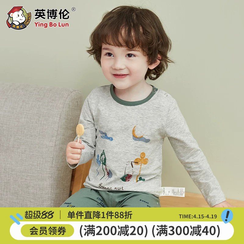 英博伦男宝宝内衣套装男童纯棉莱卡秋衣秋裤春秋幼童小童睡衣全棉