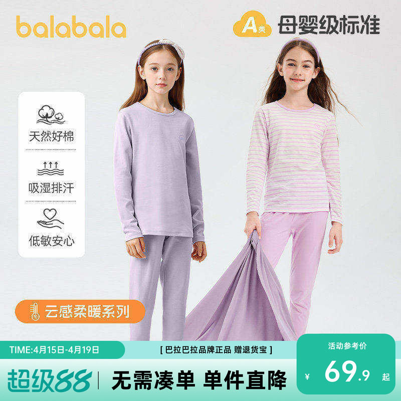 巴拉巴拉女童秋衣秋裤纯棉儿童内衣套装小童睡衣中大童打底棉毛衫
