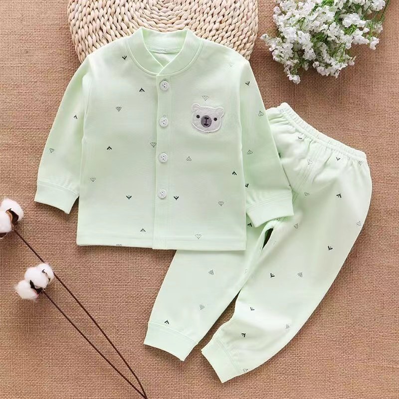 婴儿秋衣秋裤纯棉秋冬高腰按扣男女宝宝睡衣分体套装小童打底衣服