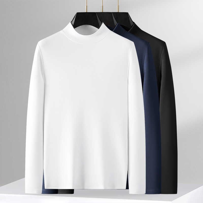 绅士高端通勤 液氨丝光棉 半高领打底衫男秋冬保暖长袖T恤抗静电