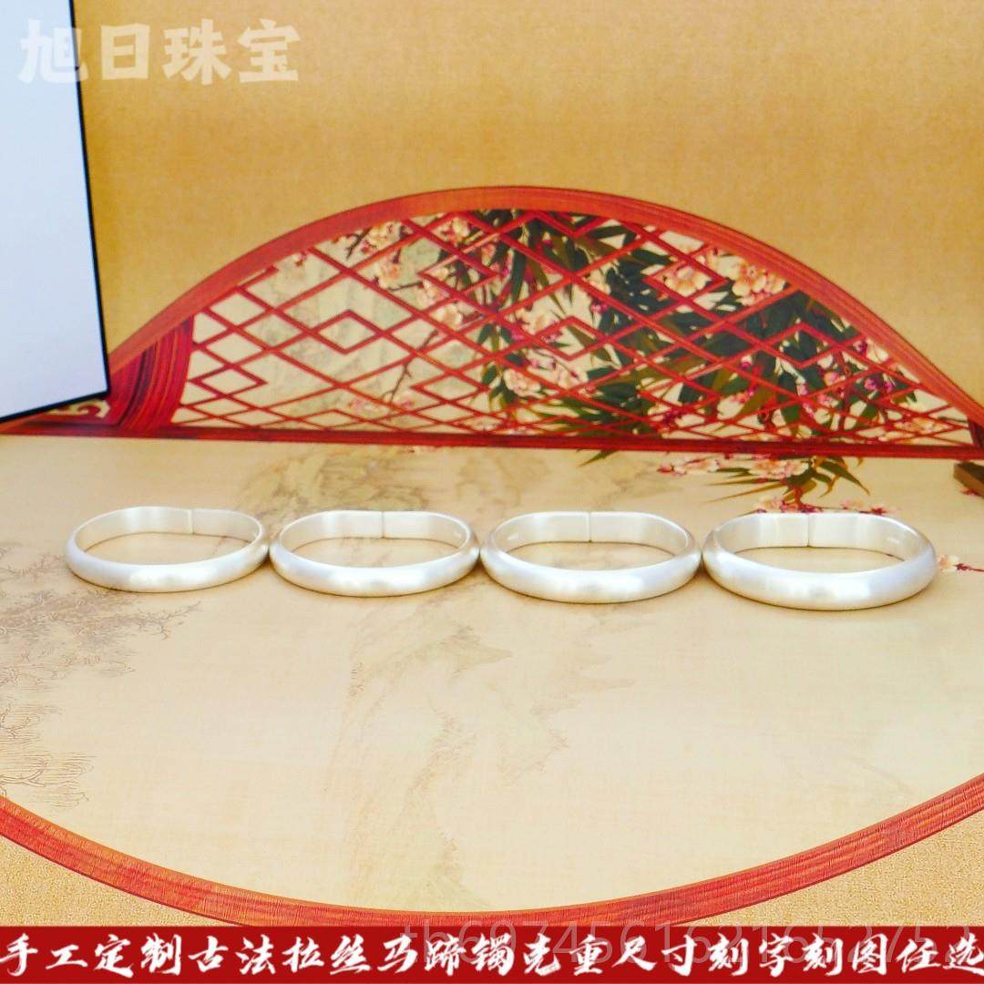正品999千足银纯银妈手镯女覆古口足实心马蹄镯子 妈款手工开银镯