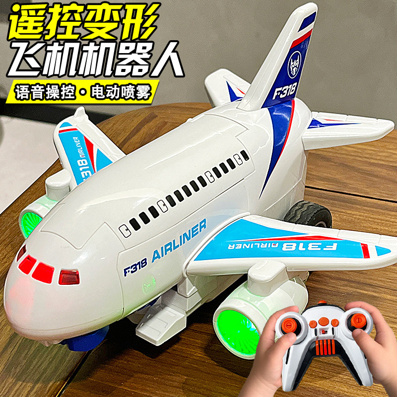 儿童喷雾遥控变形飞机模型3-6岁4男孩礼物益智多功能机器人玩具车