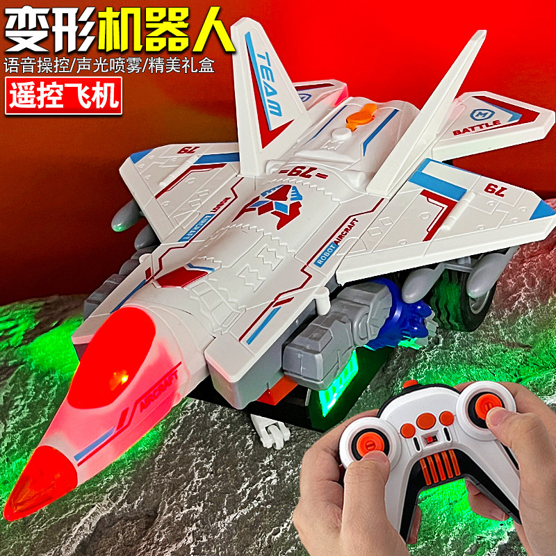 儿童喷雾遥控变形战斗机玩具男孩万向旋转直升飞机客机金刚机器人
