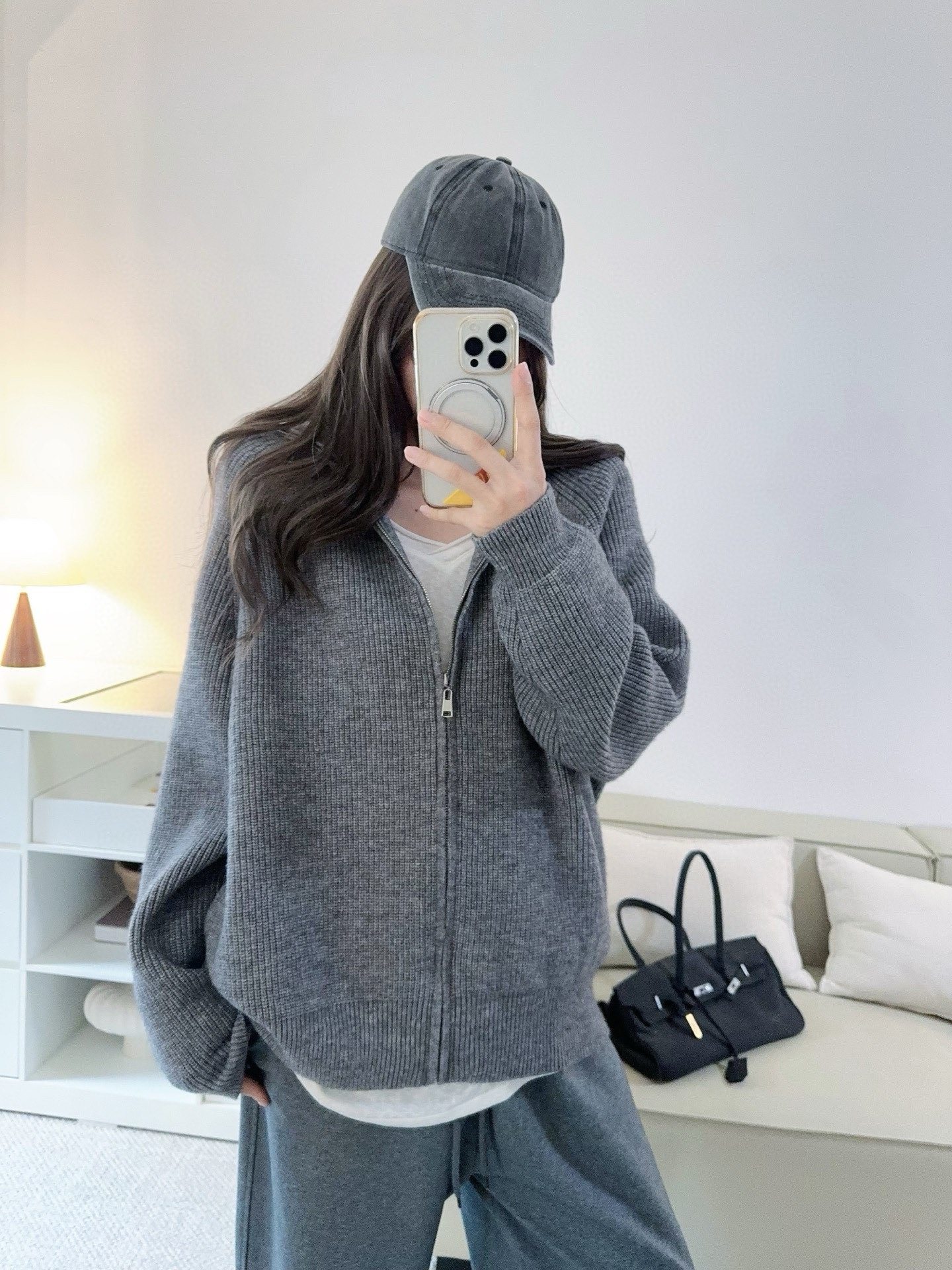 赵露思生日会同款 慵懒风针织衫连帽毛衣韩系百搭开衫半身裙套装