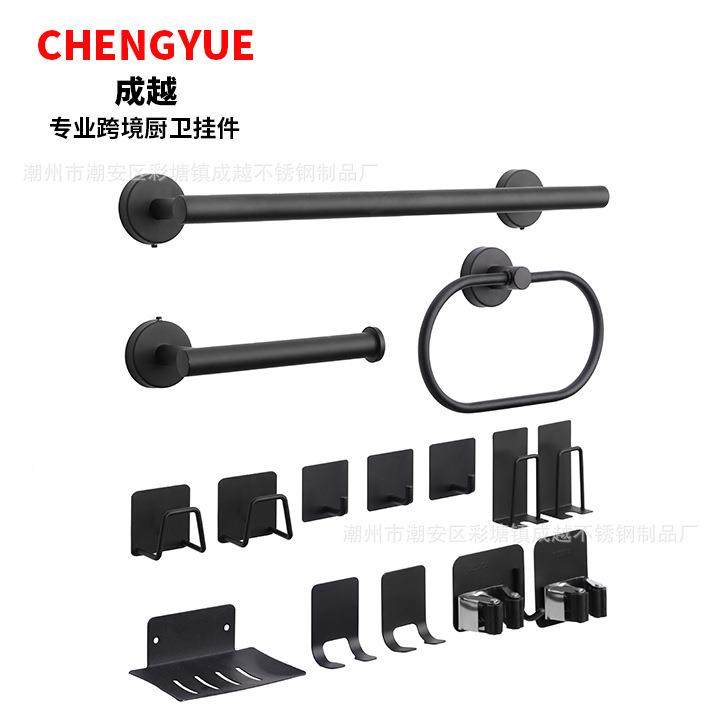 HY714230不锈钢毛巾杆套装圆形巾毛衣帽钩巾条毛巾环挂钩浴室X2纸