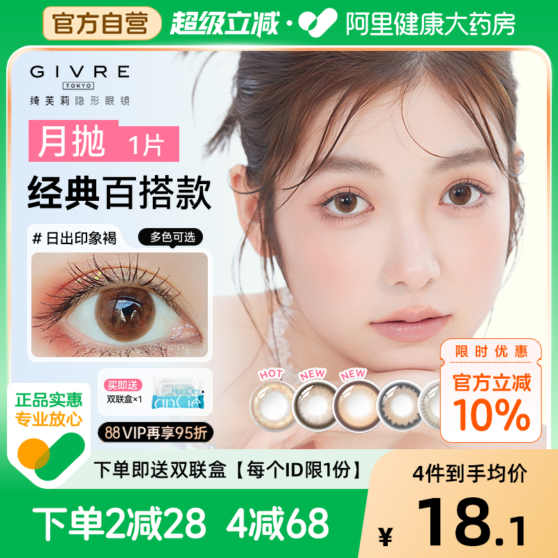 Givre绮芙莉美瞳女月抛1片彩色隐形近视眼镜小直径大自然官网正品