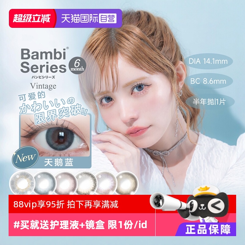 【自营】日本T-Garden美瞳女bambi半年抛2片装隐形近视眼镜小直径