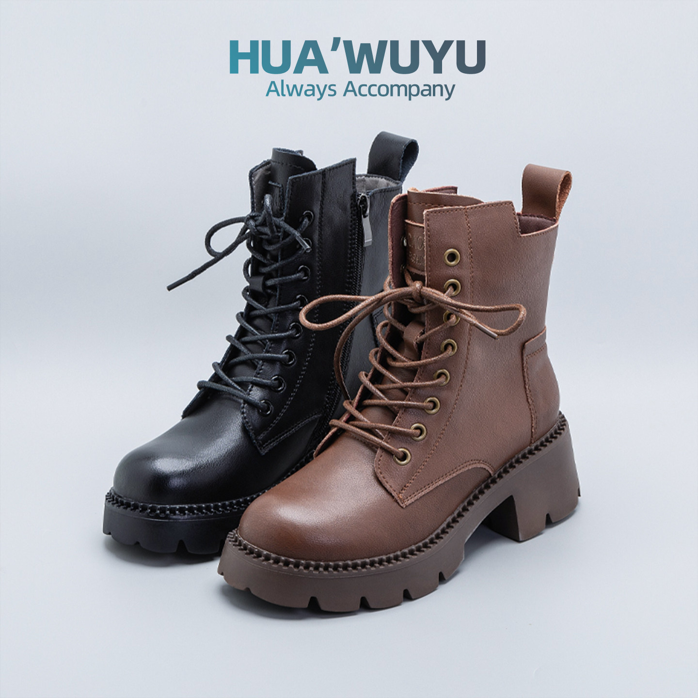 ccvv2026秋冬新款真皮高帮平底圆头系带韩版百搭学生短靴马丁靴女