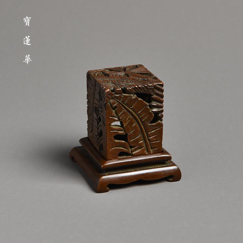 新疆包邮蕉叶四方小铜香炉摆件 香篆炉塔香炉 铜镇纸铜香盒彷古沉