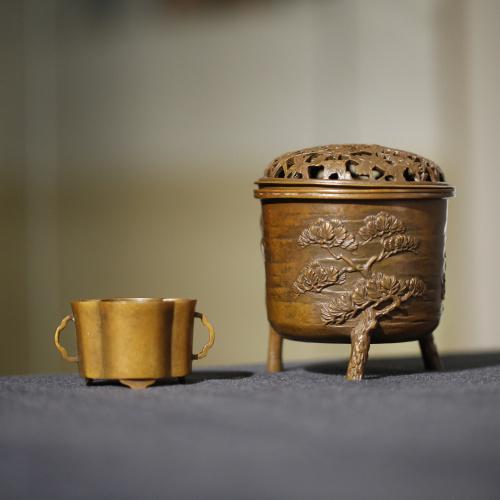 朵云文房雅器 双耳海棠炉 岁寒三友香炉 铜香炉 香道 香薰 香礼