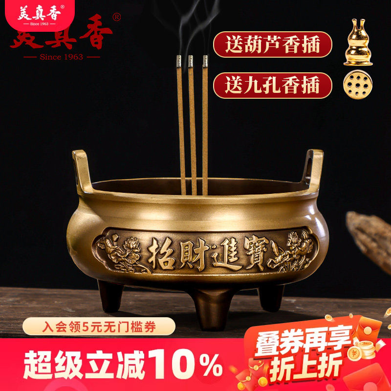 美真香黄铜香炉盘香炉檀香线香炉家用室内熏香纯供奉供佛香薰宣德