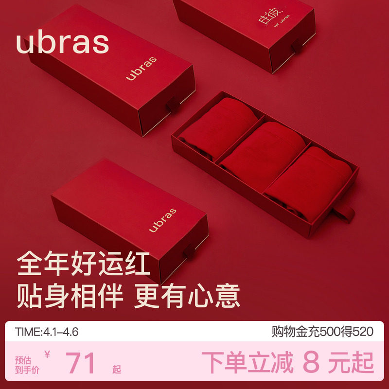 ubras本命年红色内裤女马年纯棉裆短裤红袜子结婚情侣新年礼盒装