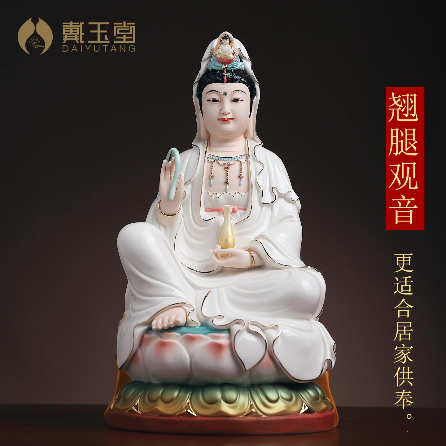 戴玉堂陶瓷坐莲观音菩萨家用供奉佛像德化白瓷南海观世音菩萨摆件