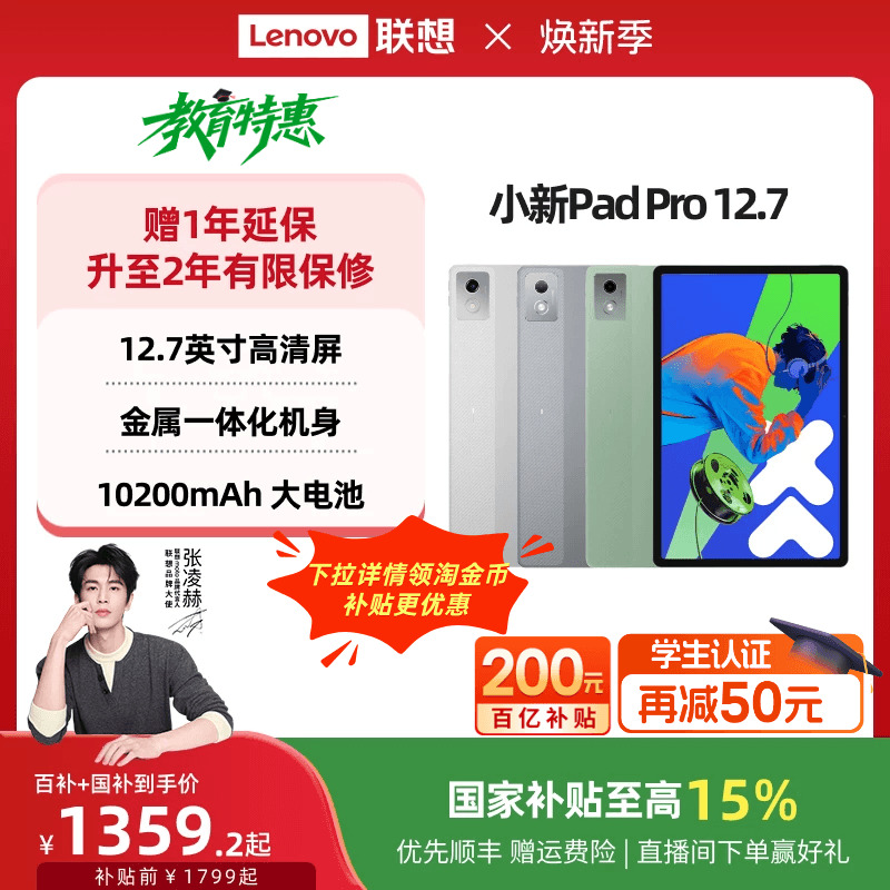 【政府补贴】联想平板小新Pad Pro 12.7英寸平板 大屏学习娱乐平板电脑二代 联想小新平板电脑 官方旗舰店