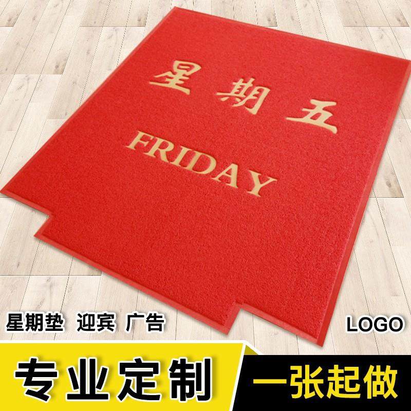 定制电梯地毯logo 红色星期地毯pvc塑胶丝圈地垫欢迎光临门口地毯