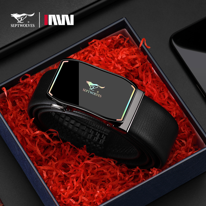 七匹狼男士皮带自动扣腰带男青年纯正品牛皮真皮男式中年爸爸裤带