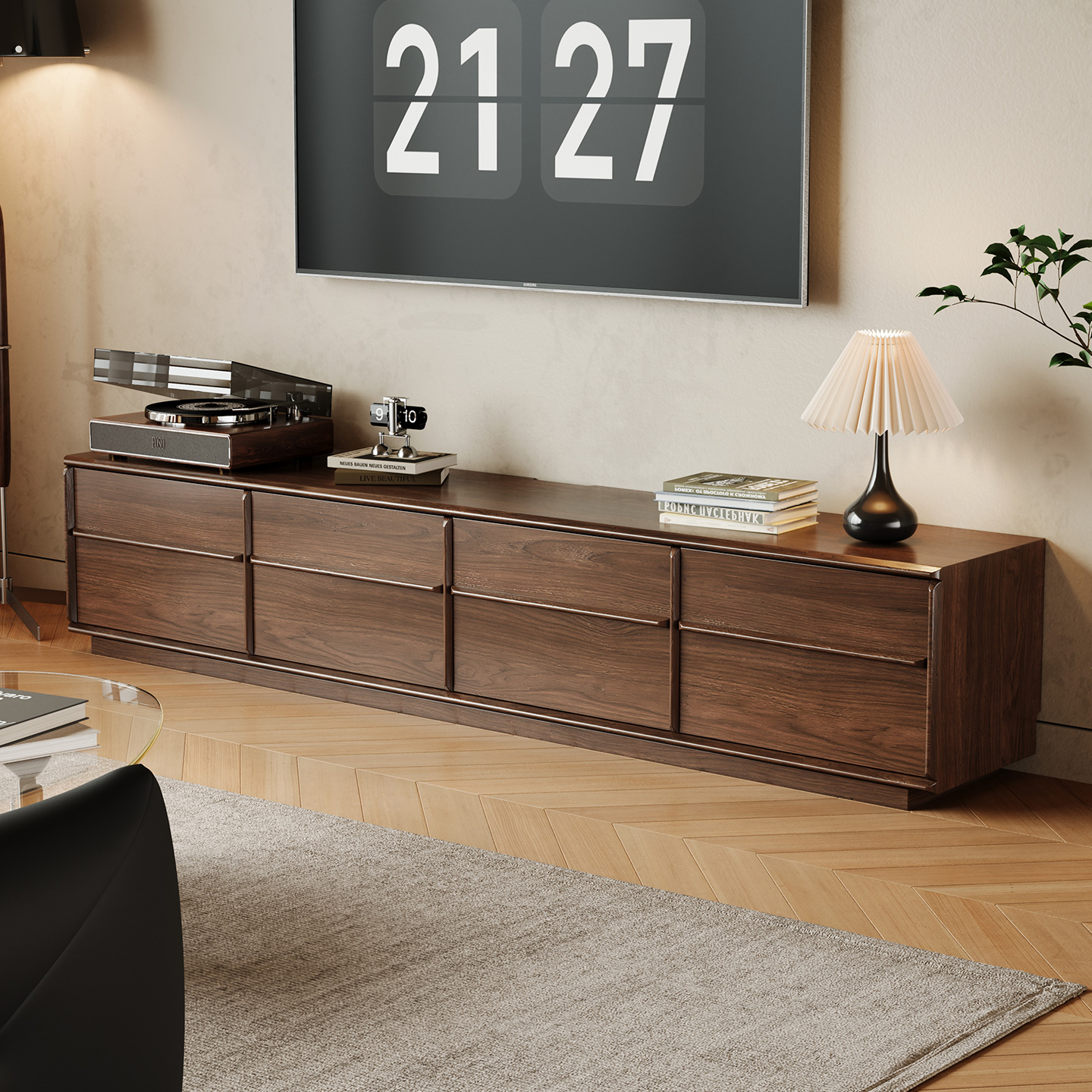 实木电视柜客厅家用小户型胡桃木落地电视柜中古风储物柜电视机柜