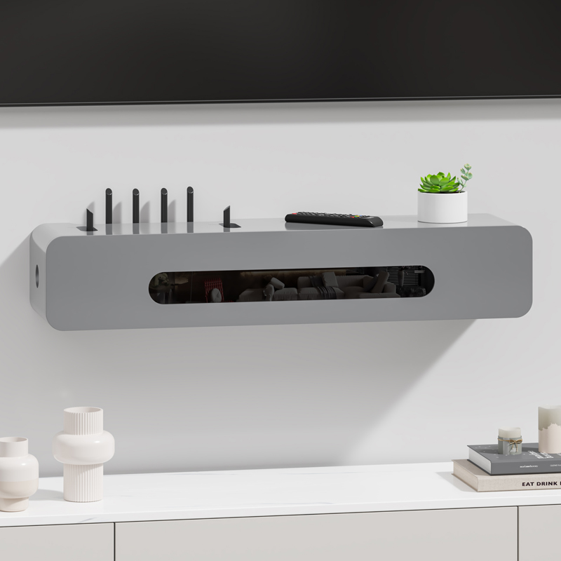 路由器收纳盒墙上免打孔电线插座遮挡装饰电视柜电视机顶盒置物架