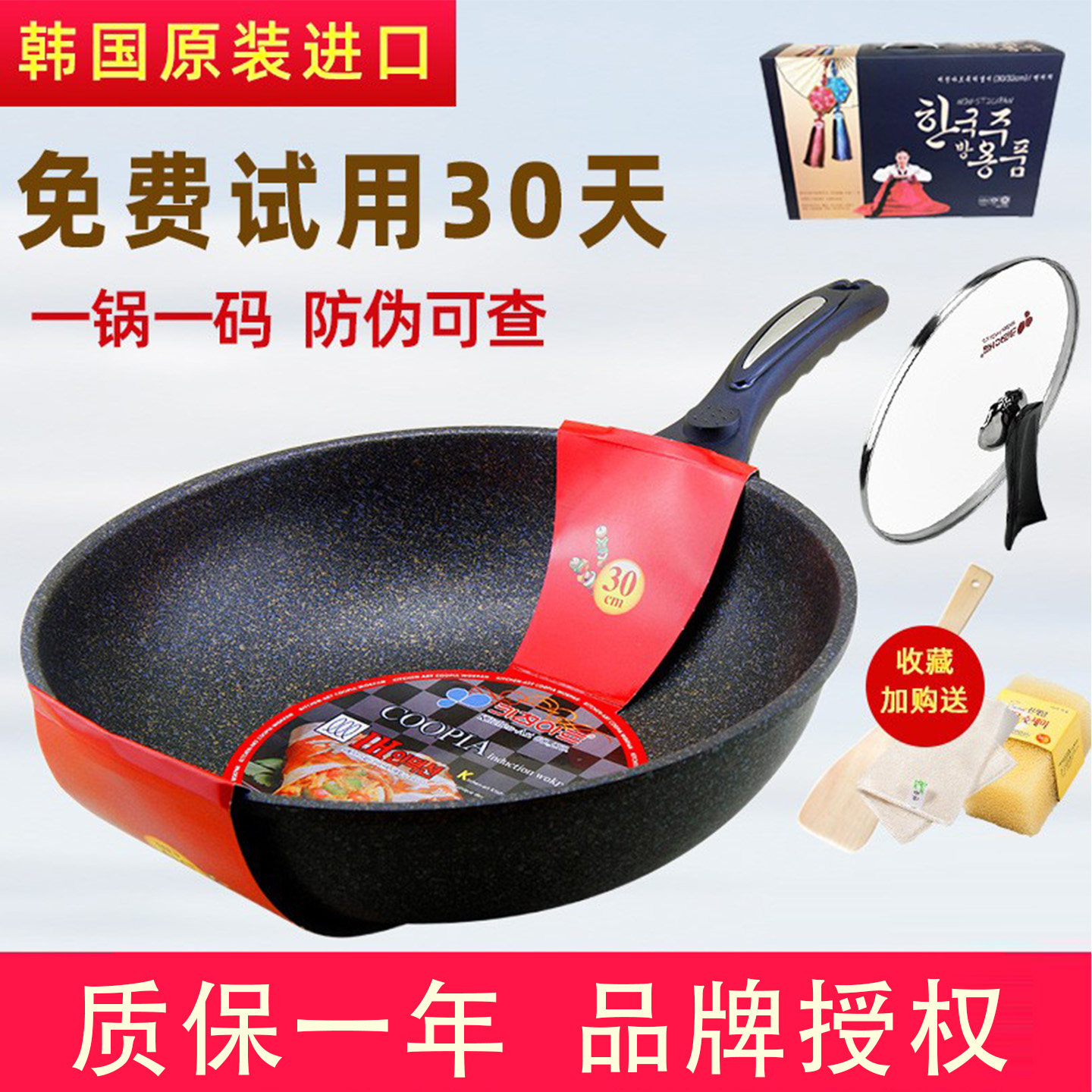 韩国麦饭石不粘锅炒锅家用原装进口电磁炉燃气灶专用不沾锅炒菜锅