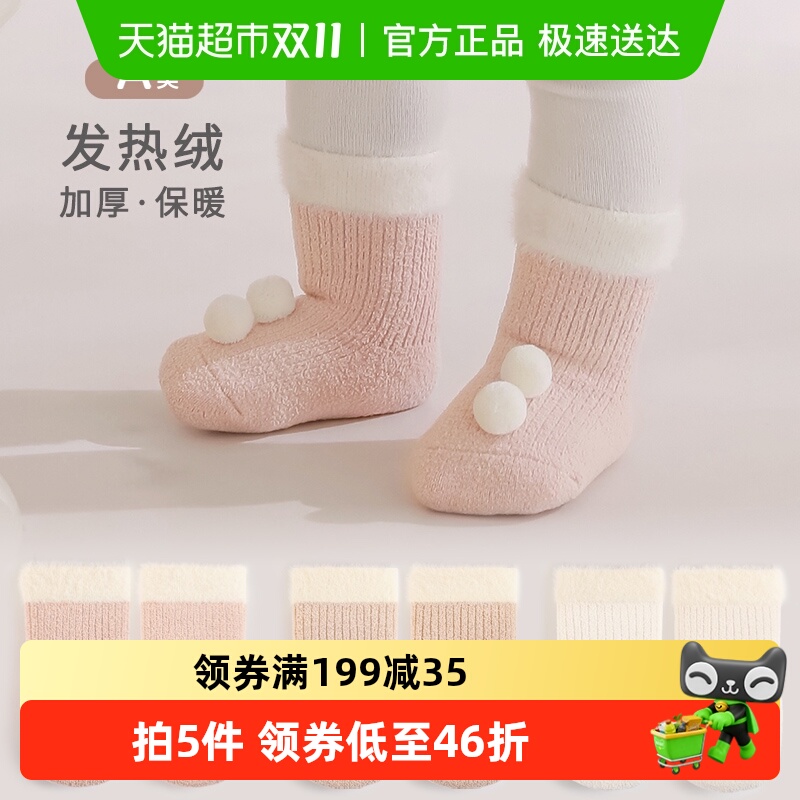 嫚熙婴儿袜子秋冬保暖加厚中长筒袜宝宝儿童袜子男女童袜新生儿袜