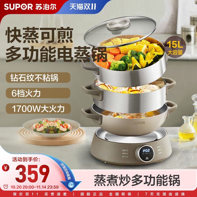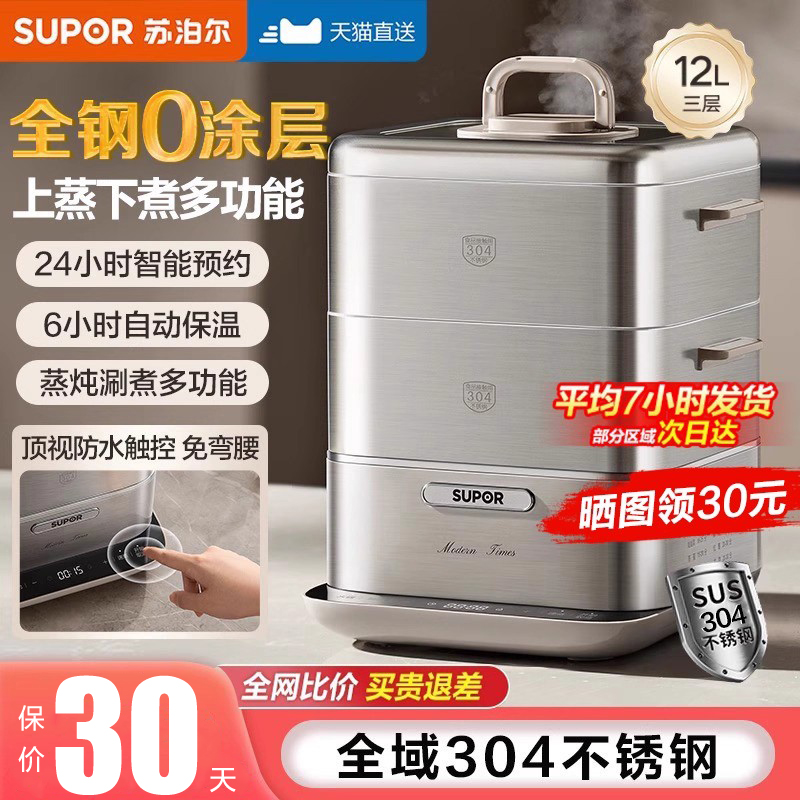 苏泊尔电蒸锅家用0涂层不锈钢18L三层大容量多功能不沾智能电蒸笼