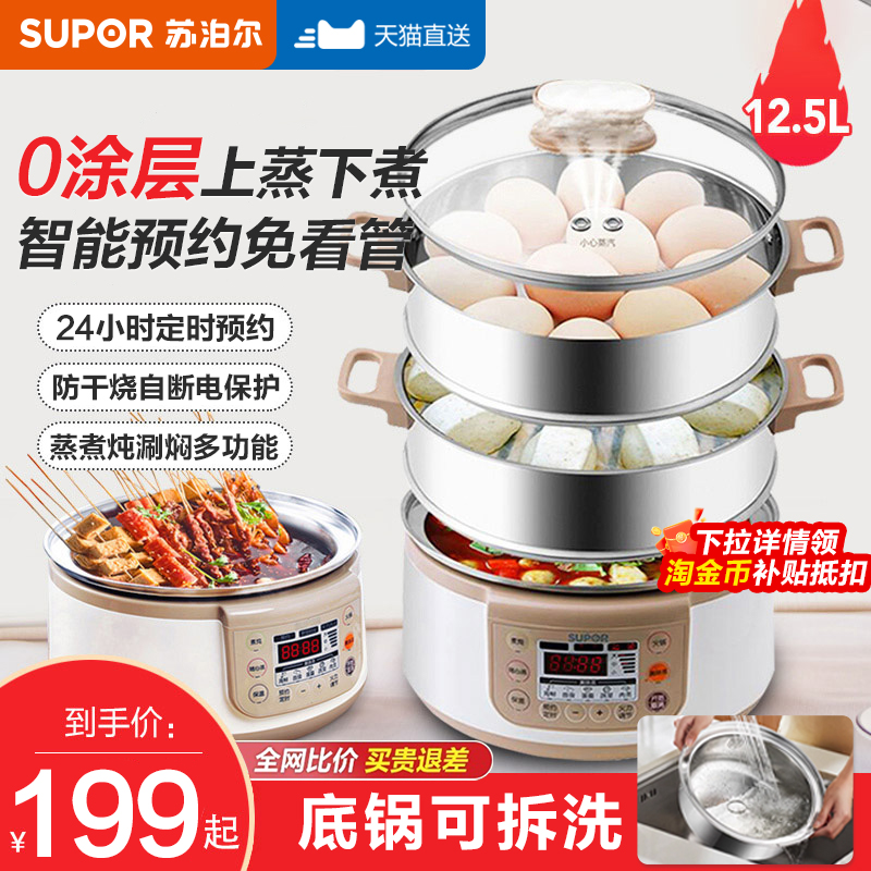苏泊尔全钢电蒸锅多功能家用蒸煮炖一体锅多层大容量三层旗舰新款
