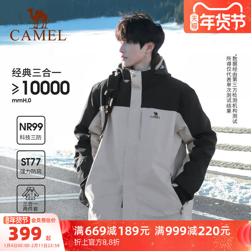 骆驼户外雨神冲锋衣男三合一羽绒服冬季防水外套女三防旅游滑雪服