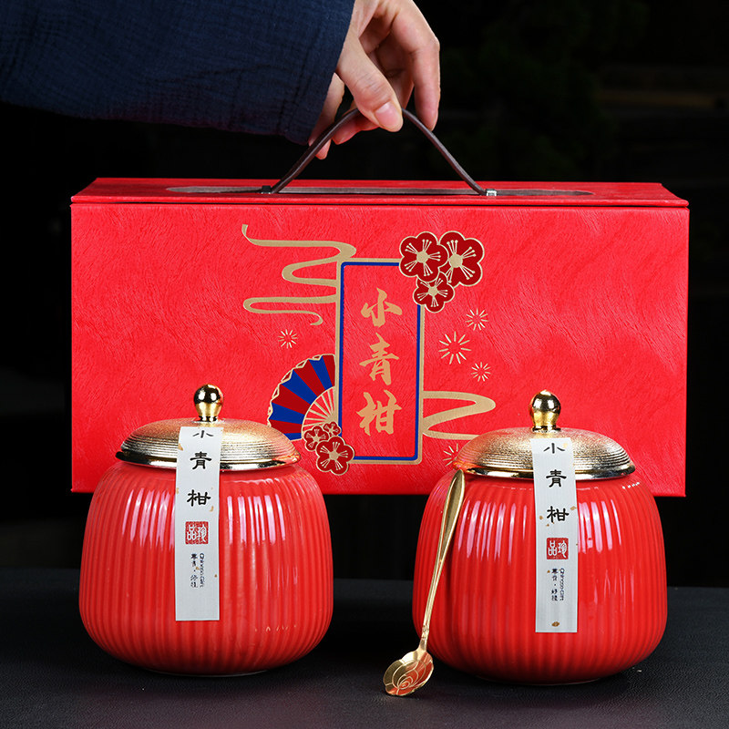 高档创意小青柑礼盒空盒普洱茶柑包装盒新会陈皮茶叶罐陶瓷密封罐