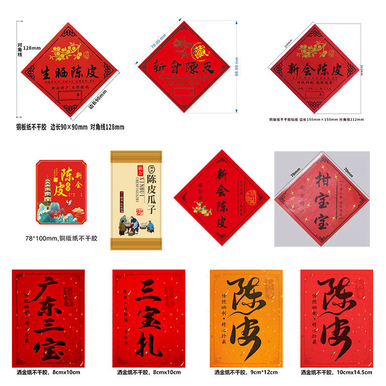 新会陈皮标签贴纸三宝扎小青柑普洱茶柑普茶柠檬菊玻璃罐礼盒定制