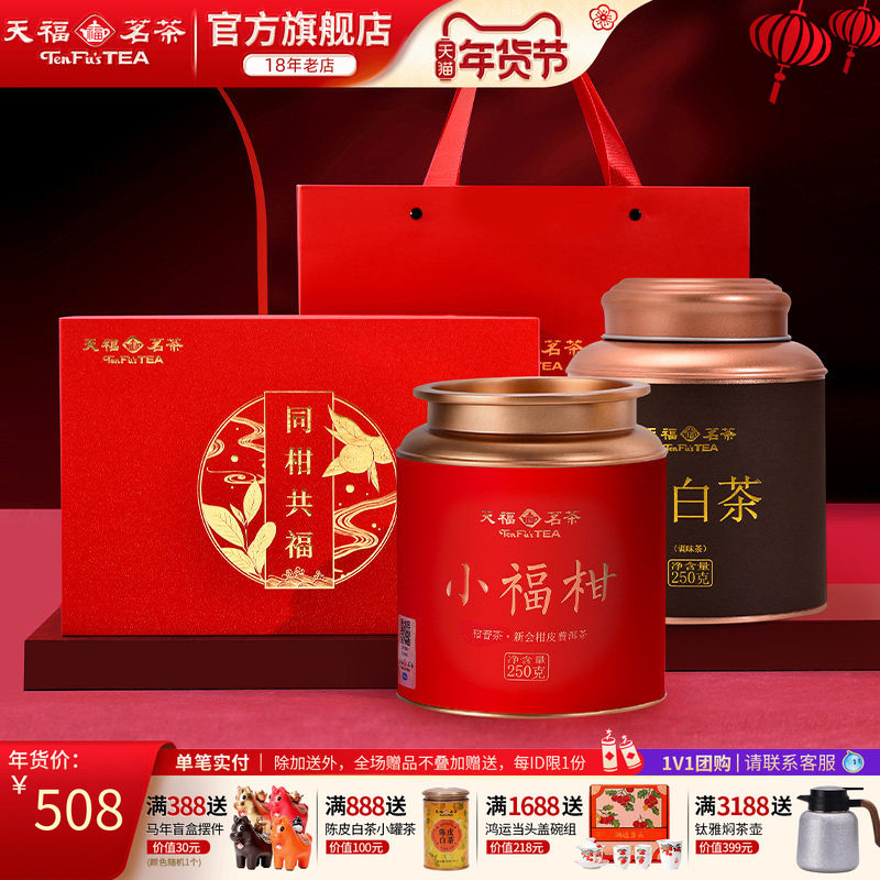 天福茗茶同柑共福 新会小青柑普洱茶柑白茶贡眉礼盒装茶叶500g