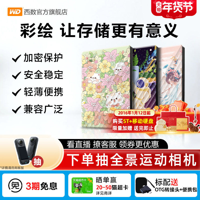 WD西部数据移动硬盘2T 5T加密电脑手机外置存储创意手绘礼品女生