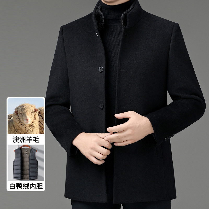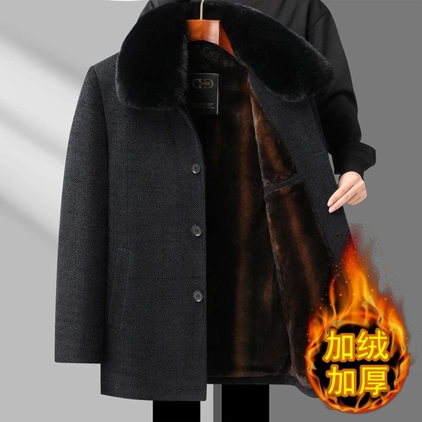 临蔡男装加绒加厚毛呢大衣冬季男士中老年休闲外套爸爸装毛领风衣