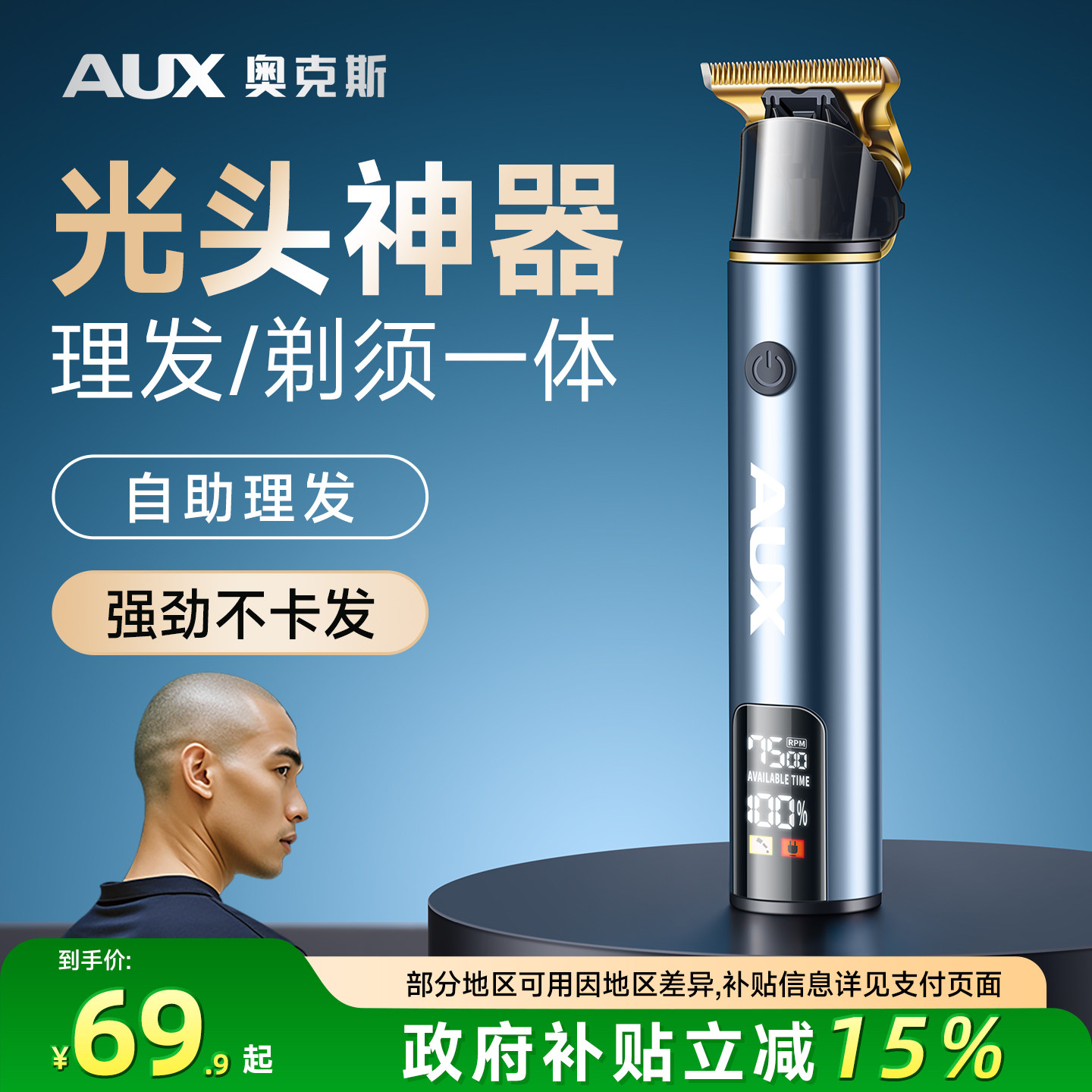 奥克斯理发刮胡子一体机理发器电推剪光头神器男士专用剃头刀发廊