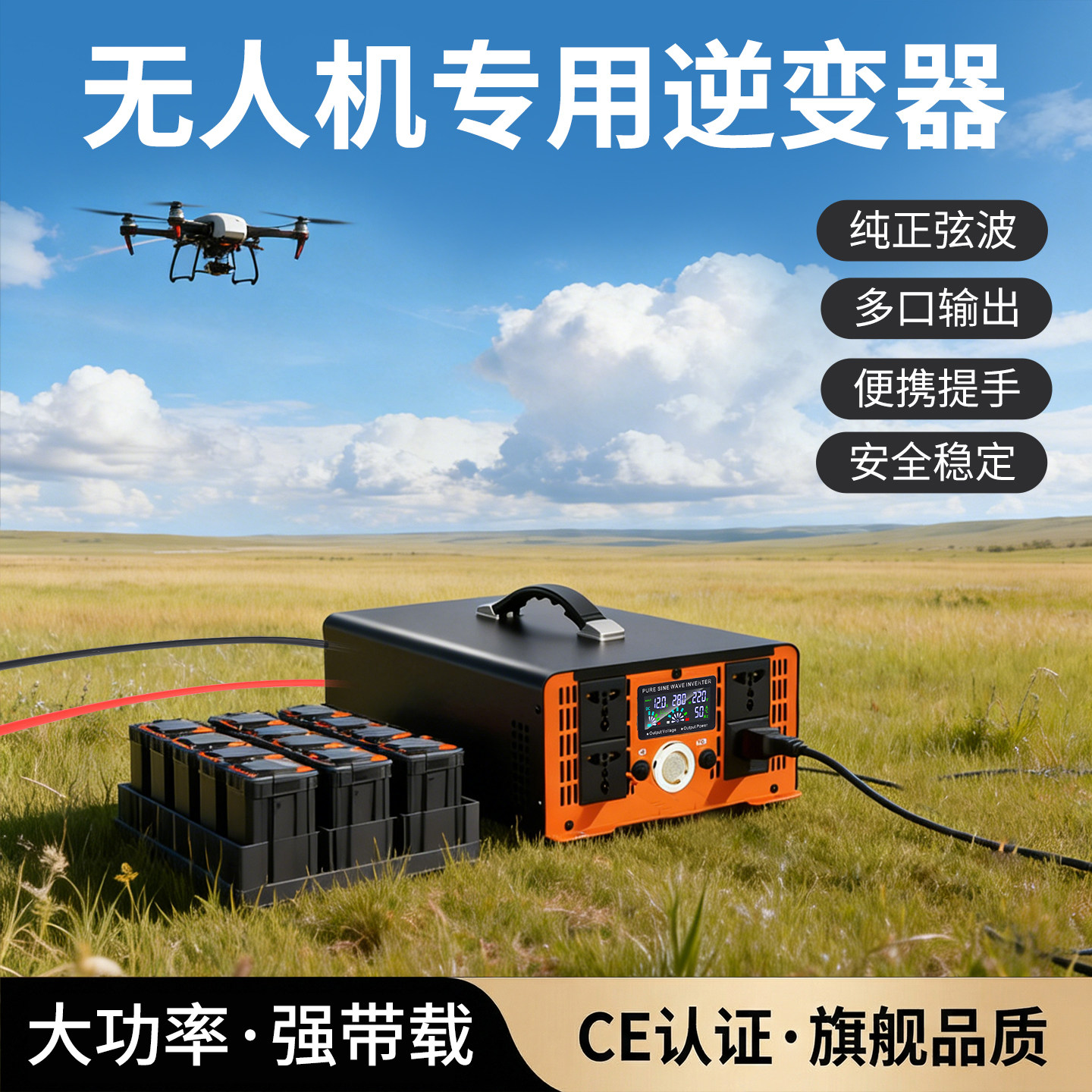 无人机专用纯正弦波逆变器大功率车载12V24V48V60V72V转220转换器