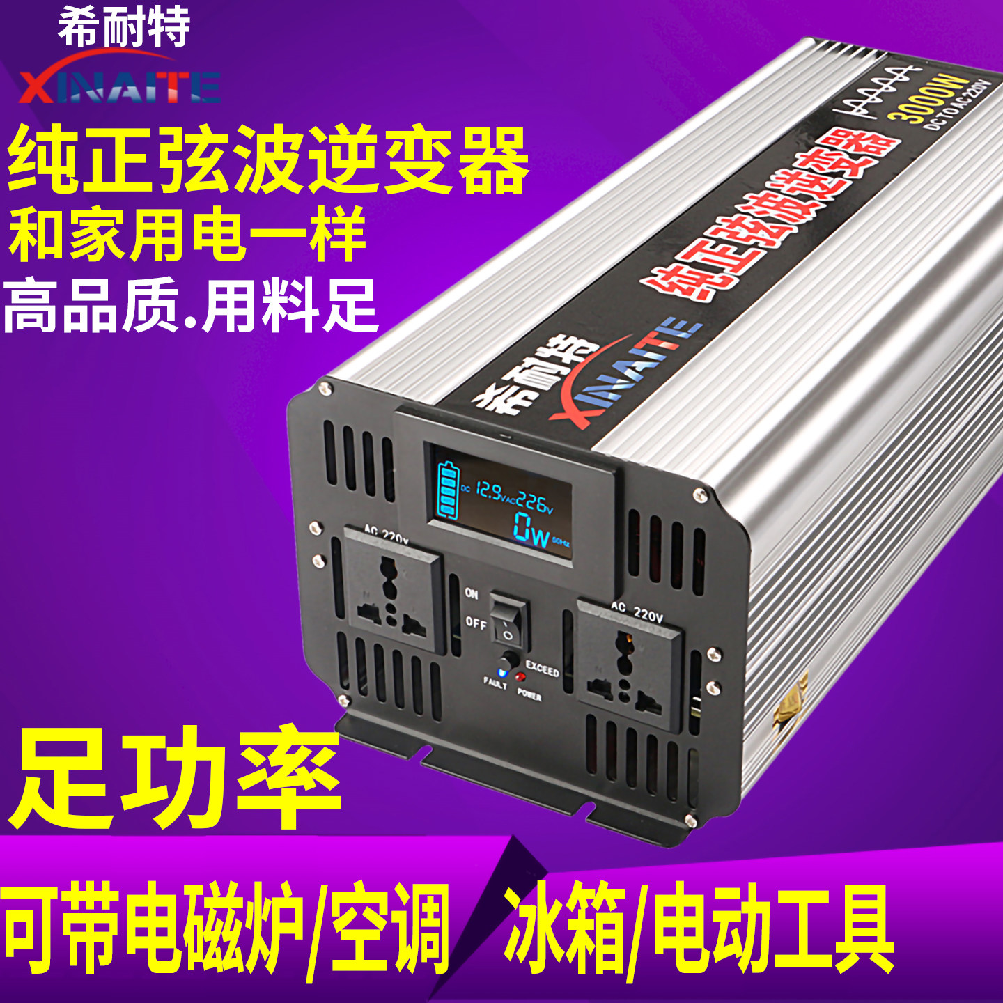 希耐特纯正弦波逆变器车载家用12V24V48V转220V3000W大功率转换器