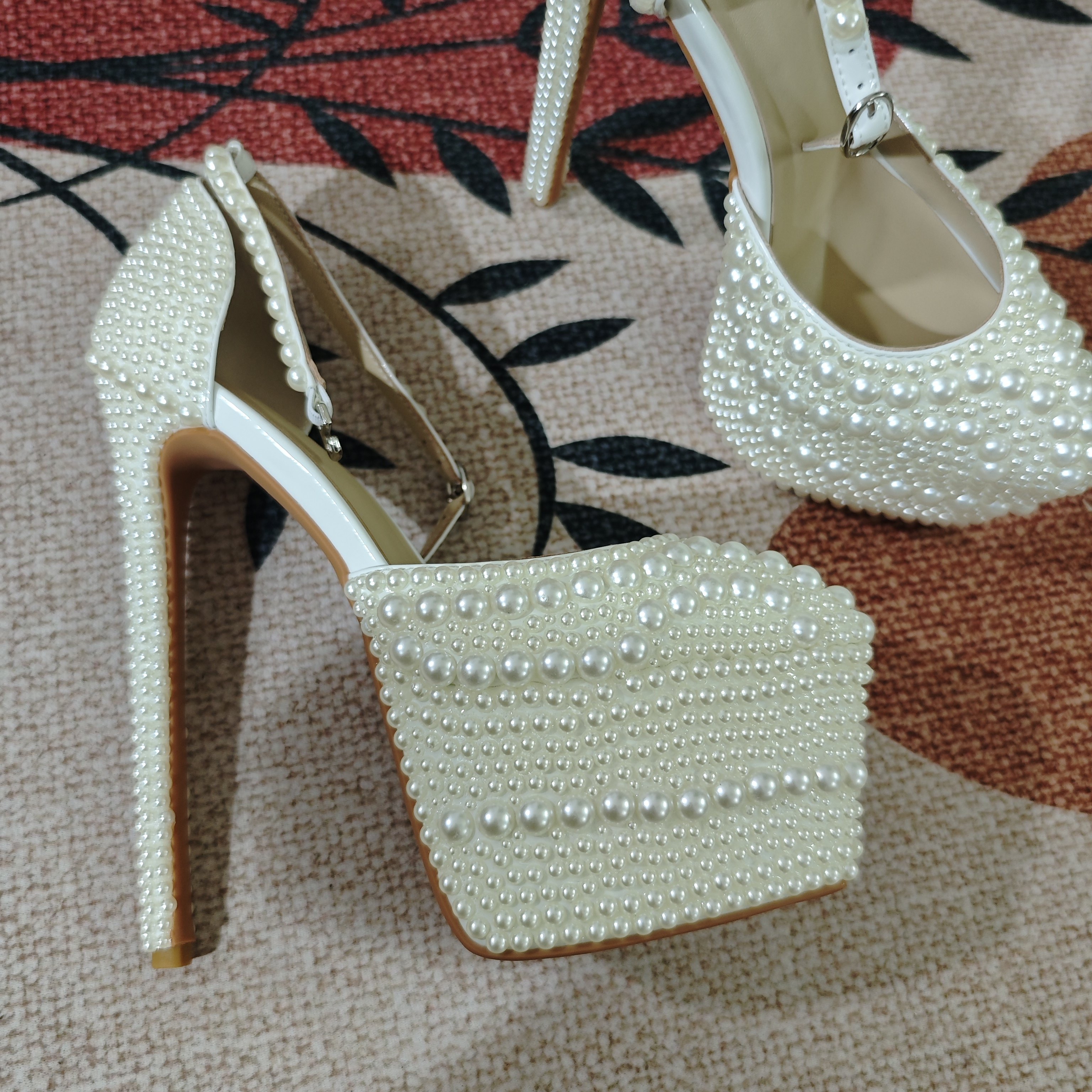 18CM超高跟凉鞋玫瑰珍珠重工婚鞋夜店防水台欧美主持演出大码小码
