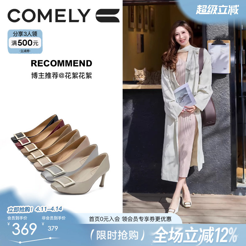 [跟高10cm]苏妃妃防水台法式粗跟方头浅口百搭婚鞋细跟超高跟鞋女