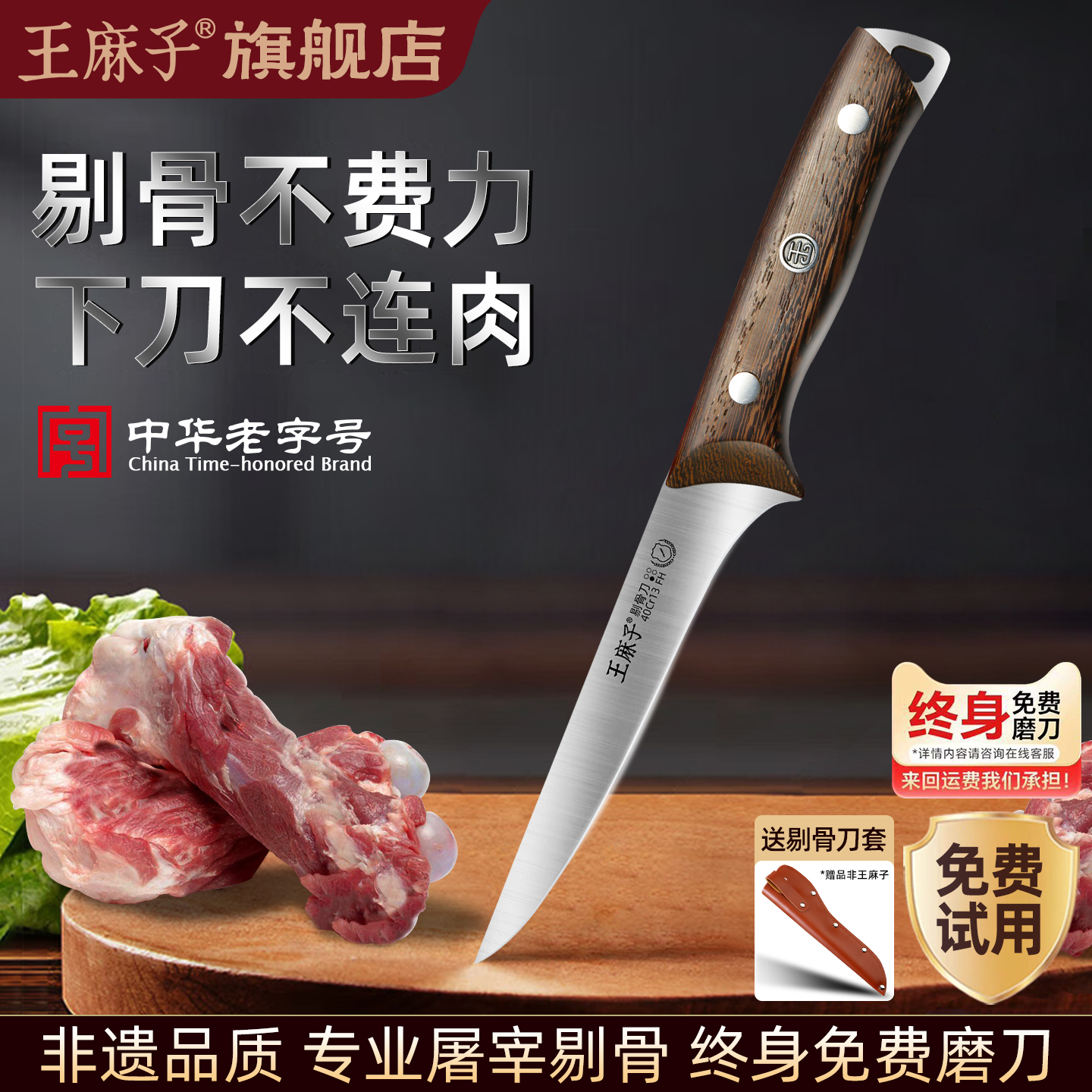 王麻子剔骨刀杀猪专用刀具放血尖刀高硬屠夫专用分割刀官方旗舰店