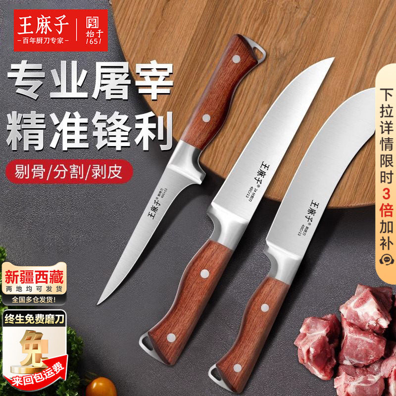 王麻子剔骨刀杀猪专用刀具放血尖刀高硬屠夫专用分割刀官方旗舰店