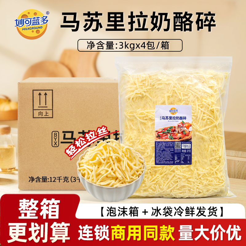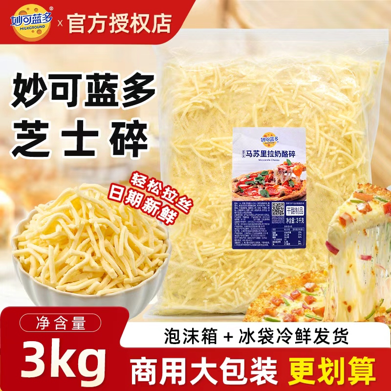 妙可蓝多马苏里拉奶酪碎3kg披萨焗饭芝士碎干酪拉丝芝士条商用