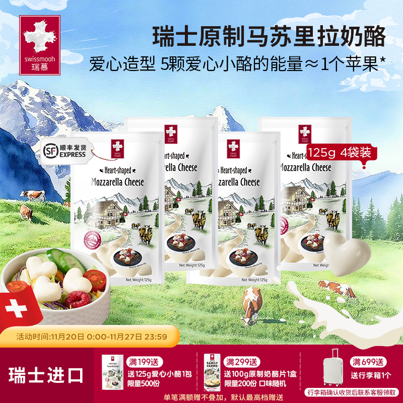 【效期新鲜】瑞慕瑞士进口原制马苏里拉奶酪爱心小酪125g*4包/5包