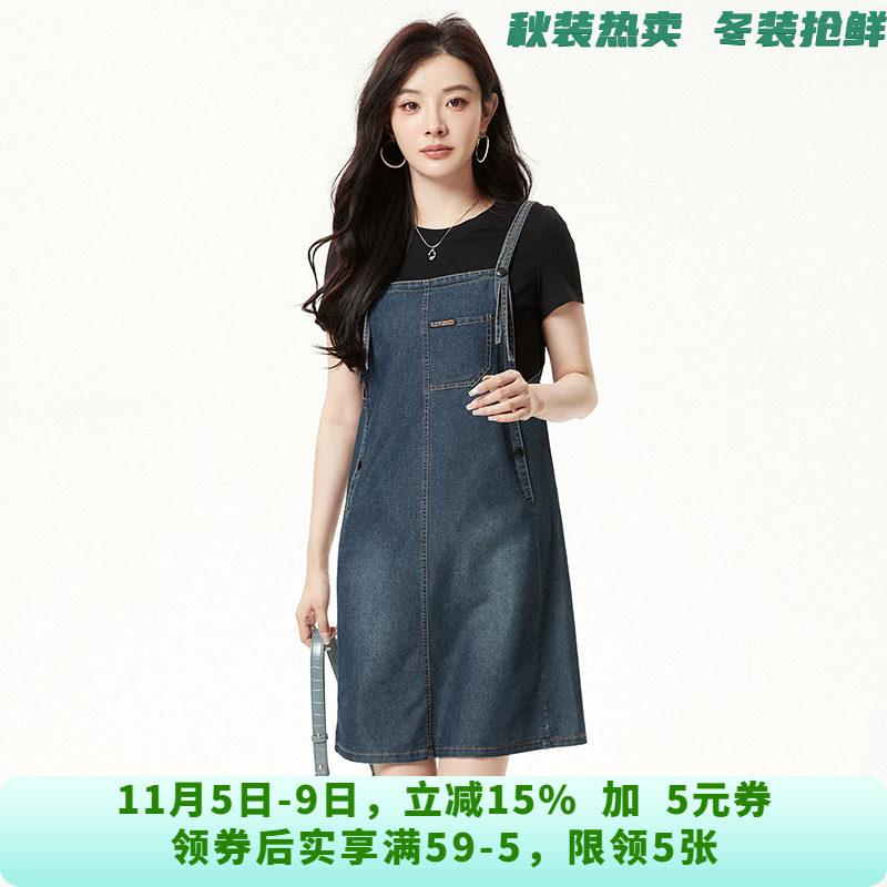 - 牛仔背带连衣裙