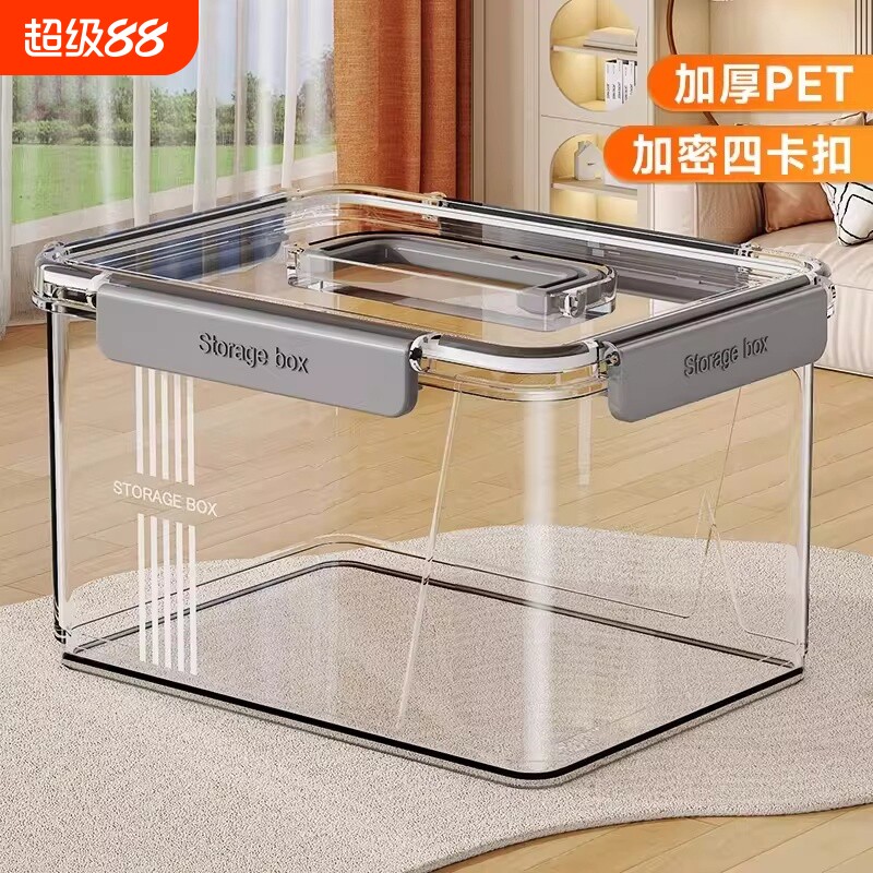 特大号透明收纳箱家用衣服玩具整理箱加厚带提手塑料储物箱收纳盒