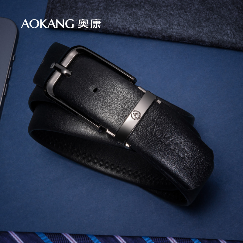 奥康皮带男真皮腰带男士简约针扣商务高档礼盒奢侈品牛皮裤带真皮