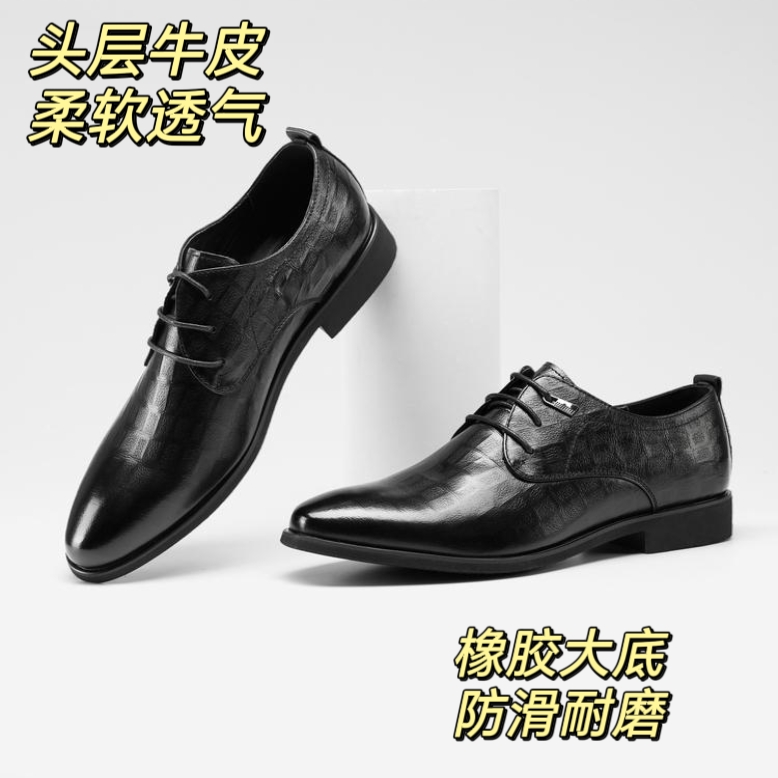 秋季商务正装皮鞋男英伦风真皮休闲软底舒适上班内增高新郎结婚鞋